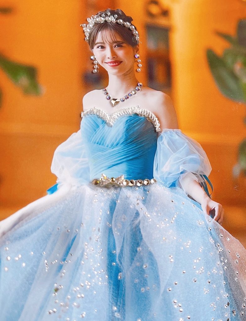前撮りや結婚式の日のお写真・イラストにパールやラインストーン・レースやシフォンの布を使ってデコレーションいたします。